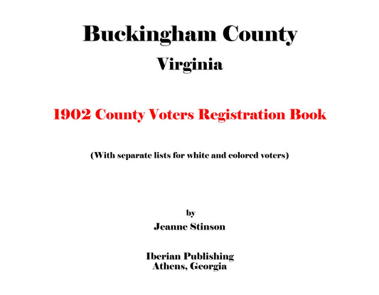 Buckingham County, Virginia 1902 County Voters Registration Book