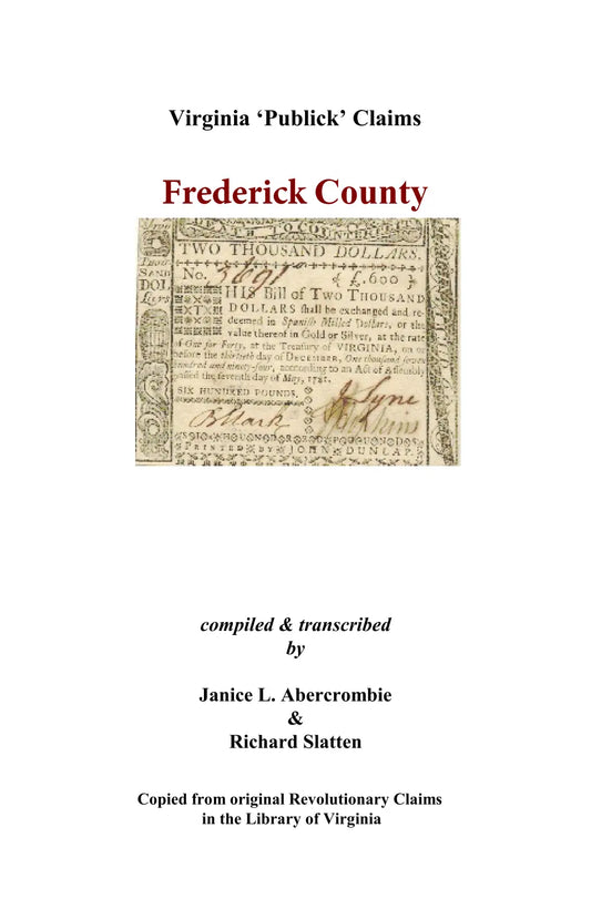 Frederick County, Virginia Revolutionary "Publick" Claims