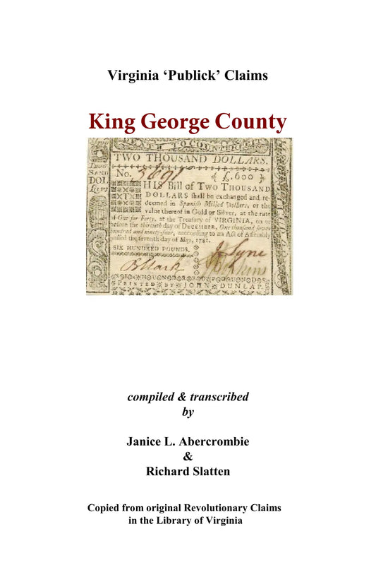 King George County, Virginia Revolutionary "Publick" Claims