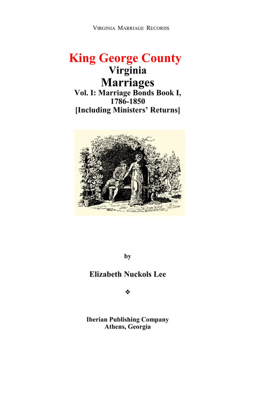 King George County, Virginia Marriages, Volume I, Marriage Bonds Book 1, 1786-1850