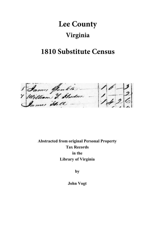 Lee County, Virginia 1810 Substitute Census by John Vogt