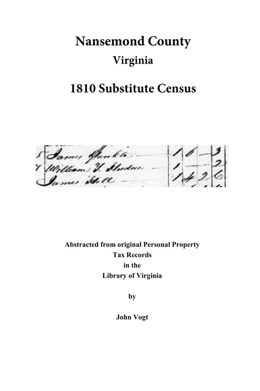 Nansemond County, Virginia 1810 Substitute Census by John Vogt