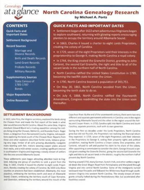 Genealogy at a Glance: North Carolina Genealogy Research by Michael A. Ports