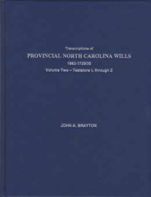 (Genealogy) Provincial North Carolina Wills 1663-1730, Vol 2 L-Z by John Brayton