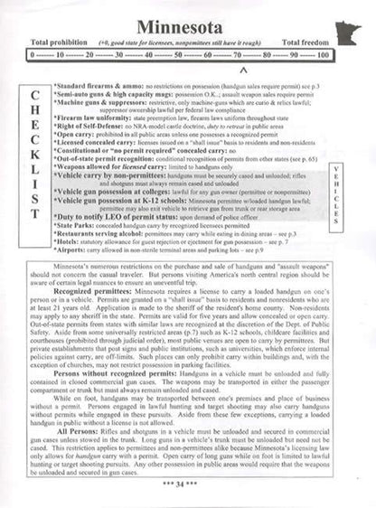 Read it before a trip, pack it, or leave one in your vehicle, so you know what to expect as you approach each state line. Clear writing gives you the basics for every state in one handy guide. Plus, each state is rated for its relative freedom, based on its gun laws, from zero to 100. See where your state ranks.