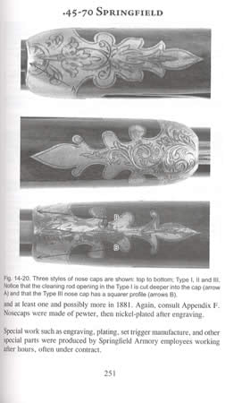 Every part and every change to that part of the .45-70 Springfield Rifle and Carbine made by the U.S. Army's Ordnance Department is described in photos and drawings. Dimensions and finishes are listed for each part in both the text and tables. For instance, seventeen different rear sights were used on the .45-70 Springfield trapdoor rifle and carbine. Each sight is carefully photographed and the differences noted. Then each rear sight is matched to the specific serial number range in which it was used. The same technique was used on lock plates, barrel bands, trigger assemblies, stocks, ramrods, etc., covering every part of the rifle and carbine.