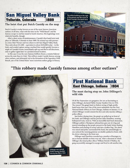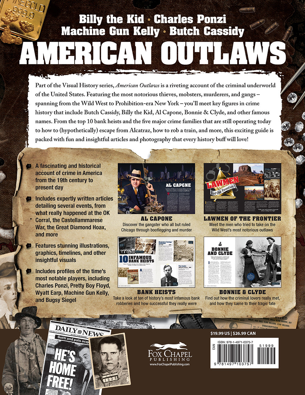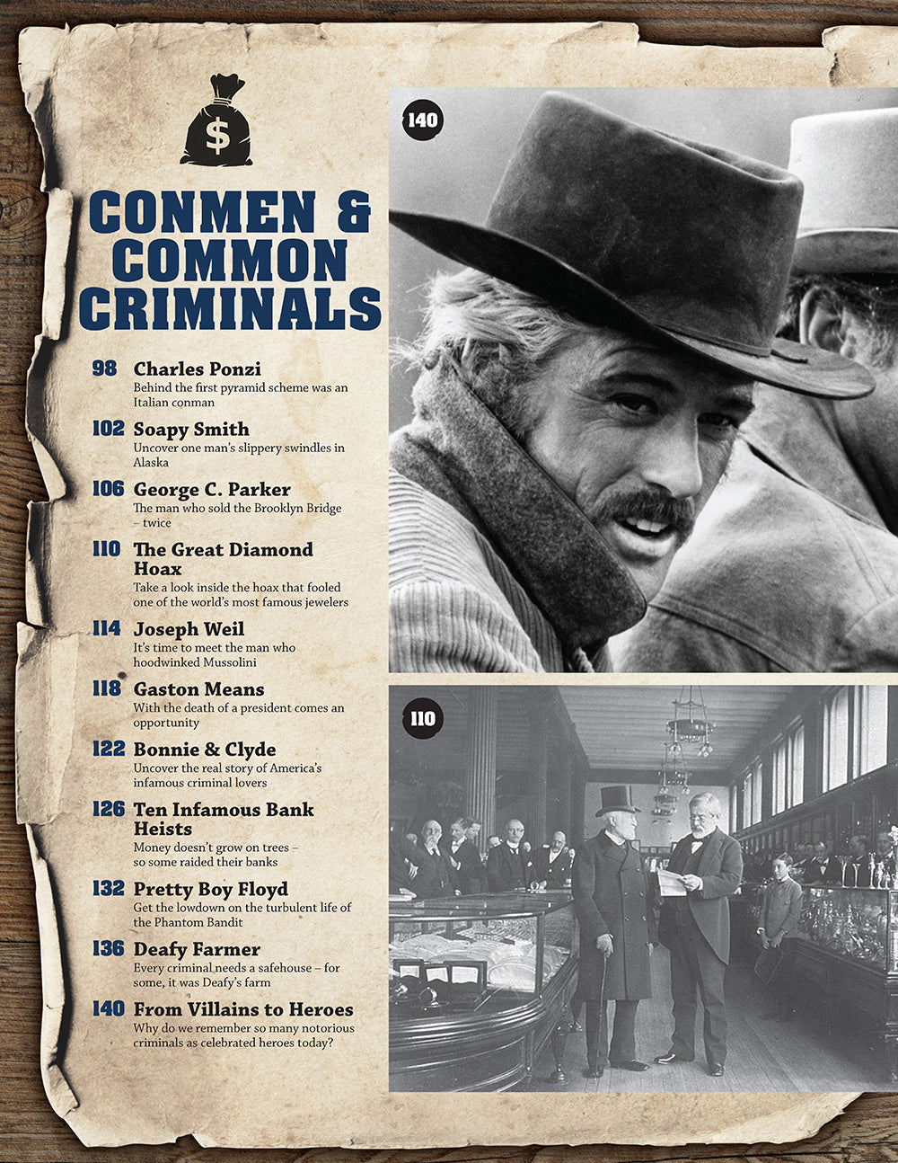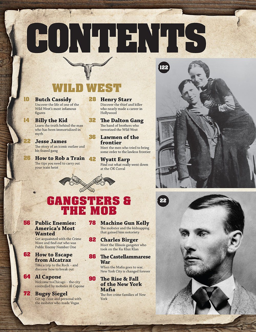 Take a step into the criminal underworld of the United States with American Outlaws. Explore the exploits of some of the Wild West's most notorious murderers and gangs, from Jesse James to Wyatt Earp, and find out what went down at the OK Corral. Then move onto the seedy underbelly of Prohibition-era New York to meet the five major crime families that are still operating today. You can also take a trip to Chicago to discover the crimes of Al Capone before heading to Las Vegas to find out about Bugsy Siegel, the mobster who made Las Vegas. We also reveal ten infamous bank heists and introduce you to some of early 20th century's best con men -- some of which could even sell you the Brooklyn Bridge!