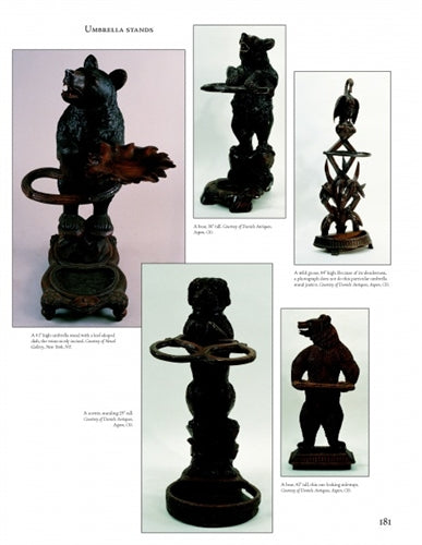 With original documents discovered to build his story, Peter Blackman has eloquently explained the origins, artistic growth, and dissemination of Black Forest carved wooden furniture and fine decor now recognized worldwide. The style evolved in 1815 in Brienz, a small village in the Swiss Alps, and spread through the 19th century, with operations stretching to Paris and central Germany. Bears are the best known and prolific examples, but many other animals and human figures also comprise the style.