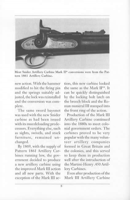 Cartridge Carbines of the British Army traces Britain's use of breechloading cartridge carbines from the development of the first Snider artillery & cavalry carbines, to the various Martini carbines (Henry, Metford & Enfield), to the Lee-Metford & Lee-Enfield Carbines introduced in the late 1800s.