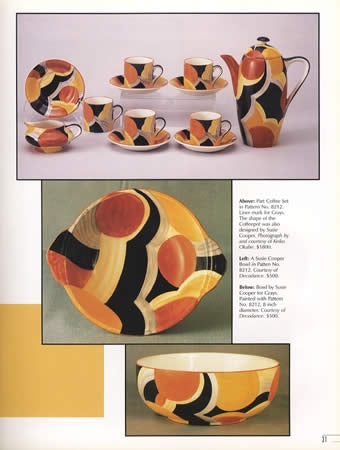 Dynamic and beautiful Art Deco ceramics blazing with eye-catching, bold -- even confrontational -- hand-painted designs on innovative vessel forms, produced by some of the most influential potteries in Britain during the 1920s and 1930s, are featured here in over 400 color photographs. Spectacular dinnerwares, vases, jugs, face masks, coffee and tea sets by Clarice Cliff, Susie Cooper, Beswick, Crown Devon, Myott, Royal Doulton, Shelley, and others appear in abundance.