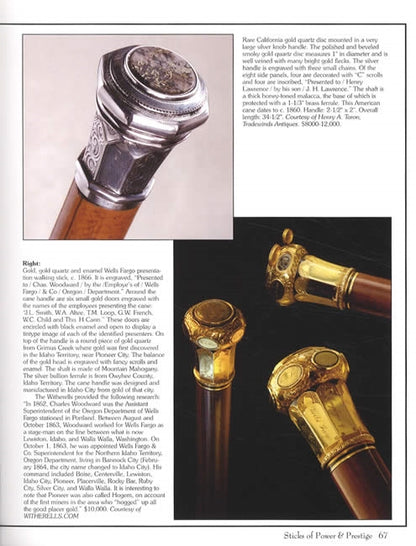 This wide-ranging volume weaves historical tales through the narrative, bringing walking sticks to life in the reader's imagination. Additionally, discussions of walking stick anatomy, care, etiquette, and valuation are included, along with an extensive bibliography and index. Values for the canes displayed are found in the captions. This book will be enjoyed by every walking stick collector and a fascinating read for all who have been intrigued by the romance of walking sticks.