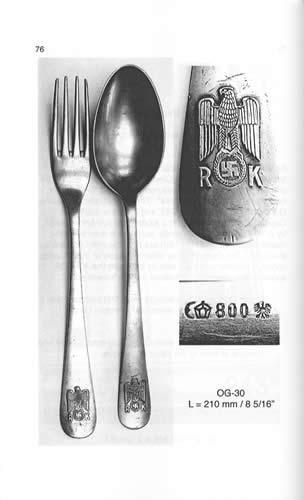 This detailed, heavily illustrated reference book which examines the personal, organizational and commemorative spoons of the 3rd Reich period from 1933 to 1945. Includes many spoon types, for example: Hitler's personal silverware, Red Cross, SS, the U-47 etc.