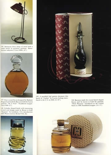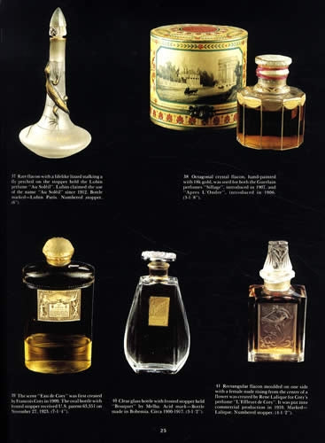 This is a comprehensive guide to collecting the past and present bottles used by prominent and sought after perfumers. Included are over 850 photos of beautiful color pictures of perfume bottles made by R. Lalique, Baccarat, J. Viard, Brosse, A. Jollivet, Cristal Nancy, Wheaton, C. K. Benda, and Lucien Guillard. Figural, novelty dimestore, and bottles with the original packaging are also shown.