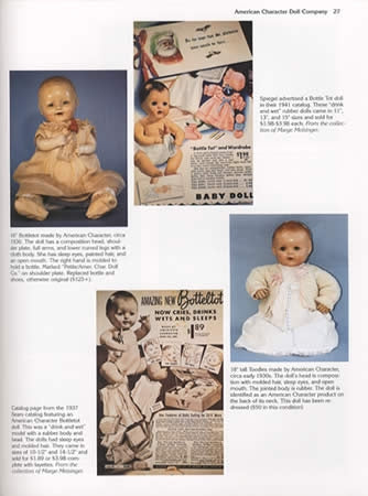 Shown are dolls made of composition, cloth, rubber, and painted bisque, each with full descriptions and current market values. Many advertisements of the era are included to help establish dates for the dolls pictured.