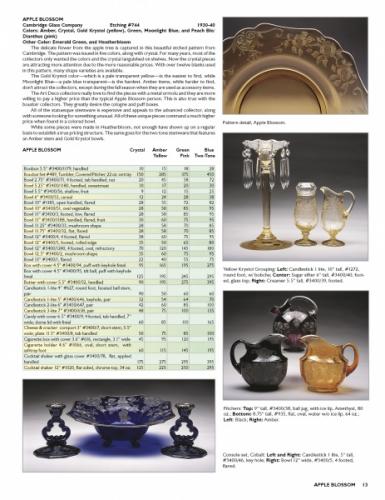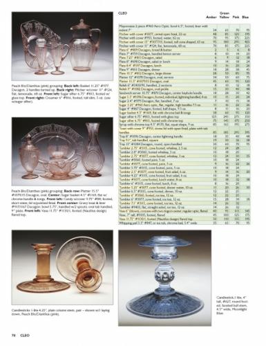 Over 1000 beautiful color photos display a wide spectrum of Elegant Glass patterns, colors, shapes, and etchings. The book's listings are updated and over 100 patterns of elegant American glass are represented in this new 4th edition. Several patterns have additional listings. Each pattern includes a complete listing of all known pieces made. Detailed descriptions are given for each item listed. Captions include descriptions of each piece pictured. The major companies of Cambridge, Fenton, Fostoria, Heisey, Imperial, Morgantown, New Martinsville, and Paden City are represented, along with their most popular patterns. Introductions to each pattern include production dates, pattern and/or etching numbers, and original company colors. Full lines of dinnerware and their companion patterns are listed, along with bedroom, bath, and decorating pieces. Aiding collectors in identifying patterns, a detailed image of each etching is provided in every description. Collector resources, a detailed bibliography, and a glossary complete this thorough guide.