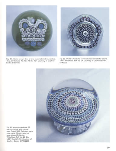 Whitefriars lovers will appreciate the most comprehensive list ever published. Of the book's 360 color illustrations, over 60 are of Whitefriars, including more than fifteen highly important paperweights never illustrated before, such as the Royal Visit and a footed magnum over five inches in diameter.