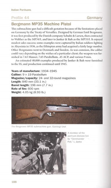 This book covers all classes and types of small arms, from pistols to heavy machine guns, known to have been used by the Italian partisans during WWII. It provides a brief history of the origin and development of the partisan movement in Italy following the 8 September 1943 armistice between Italy and the Allies and subsequent occupation of the northern portion of the country by Germany. There are many relevant examples of correspondence between partisan units relating to acquisition, distribution, use, maintenance, and problems encountered with the various types of small arms available. The majority of the pages of this book are dedicated to a complete, thorough, and extensive coverage of each individual type of weapon known to have been used by the partisans, including specifications, supported by current as well as vintage photographs showing the weapons in use by the partisans.