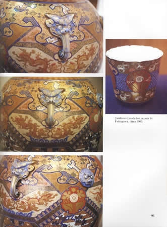 The popularity of Japanese ceramics in the West caused a vast and delightful variety of wares to be made for export. Colorful Imari porcelain in deep blue, orange-red, and gold, Fukagawa porcelain in imaginative designs, as well as the softly colored Satsuma earthenwares, are the best known of the old Japanese exports, shown here in hundreds of variations by skilled decorators. Also presented are the exotic Sumida and Banko wares, relative newcomers to the field whose popularity has grown steadily over the last ten years. Makers' and decorators' marks, unusual shapes, design variations, and hard-to-find examples are all shown in 600 color photographs with identifying captions and concise text."