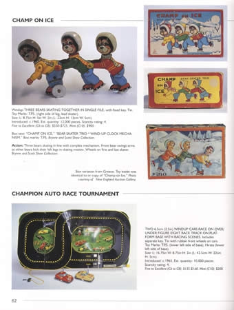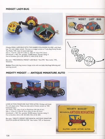 In the 1950s and '60s, fine-quality Japanese-made toys flooded the market and sold popularly at five and dime stores worldwide. A top-notch Japanese manufacturer of these toys was Toplay Ltd., recognized by their T.P.S. trademark, who also made toys for importers like LINEMAR, Cragstan, Frankonia, Rosko, and Mego. Over 265 motorized, wind-up, battery-operated, tin, plastic, animal, and platform base toys are featured, including authorized editions based on Popeye and Walt Disney*r characters. Information on manufacturers, the trading and import companies, dates of production, patent drawings, dimensions, descriptions, and original packaging are included. A price guide and identification of over 200 Japanese trademarks complete this useful guide.