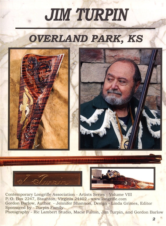 Jim Turpin - Artist, Teacher is Volume 8 of the CLA Artist Book Series from the Contemporary Longrifle Association. Each volume features the most talented and accomplished craftsmen of the Longrifle Culture, and is loaded with color photos and descriptions of each artist's finest works, along with an interesting biographical sketch outlining their history. These are full size, hardbound books with 32 pages in full color that are great references.