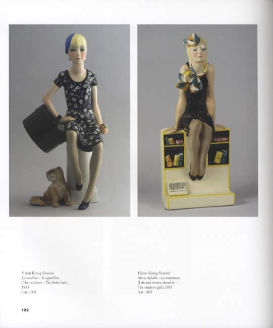 Lenci's ceramic sculptures gained their inspiration from contemporary fashion magazines, amidst traditional scenes, figures of young captivating and mischievous women that described the tastes of an era and of a society. Sportswomen, actresses, but even courtly scenes, partner dances, rustic and mythological themes, fairy-tales, grotesque and funny-looking children, female nudes bordering on affectedness and playfully provocative women are the visual archive of a community balanced between alternating historical events during Italy's Fascist period -- becoming the unavoidable status symbols in Italian middle-class parlours.