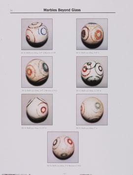 Marbles made in many materials other than glass. Minerals, stone, clay, crockery, pottery, china, porcelain, cloisonne, gutta-percha, scrimshaw, wood, metal, and more appear here in over 930 color photos.