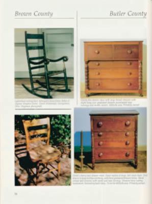 Much of the contents are broken down by county, with photographic examples and descriptions provided for locally produced furniture. An index contains a more complete listing of all the names of know cabinet/ furniture makers for each county, broke down by name. (A genealogist would also find this helpful!) Some of the counties they have spent additional time exploring include Adams, Belmont, Brown, Clark, Clermont, Clinton, Fairfield, Franklin, Greene, Hamilton, Hocking, Jackson, Lawrence, Montgomery, Morgan, Muskingum, Perry, Preble, Ross, Warren, Washington.