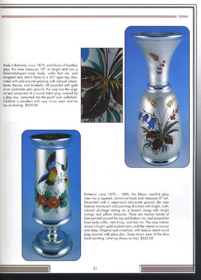 With hundreds of photographic illustrations and accompanying text, Pictorial Guide to Silvered Mercury Glass will delight collectors. Each item is individually showcased to provide both visual and factual information appropriate for both the new and advanced collector. The complex production history of silvered mercury glass is explored extensively in the beginning of the book, and includes detailed information about decorating techniques. The chapters are arranged by form and style, and include sections on vases, compotes, goblets, globes, tableware, and specialty items.