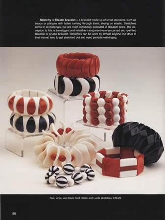 Today, when Bakelite and celluloid are snapped up at ever higher prices, many collectors turn to brighter, more playful, and more affordable plastic jewelry from the second half of the 20th century. Until now, collectors of Lucite and other plastic bangles had no information about these attractive collectibles.