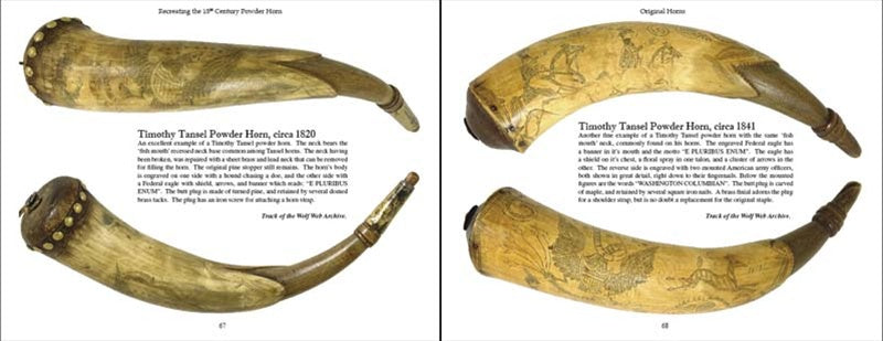 To inspire you, this book displays a large collection of highly collectible and valuable reproduction powder horns, made by Scott and Cathy Sibley, displayed in amazing large high resolution full color photographs, by Track's master photographer, Mr. Ryan Gale.
