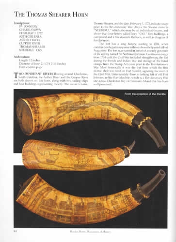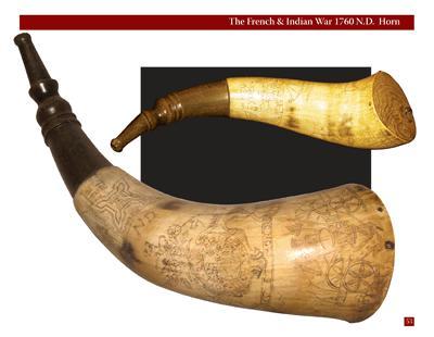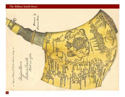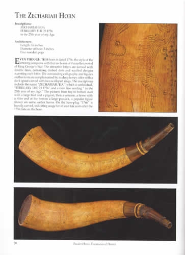 Hand-drawn illustrations of historic powder horns along with numerous photographs and descriptive text.