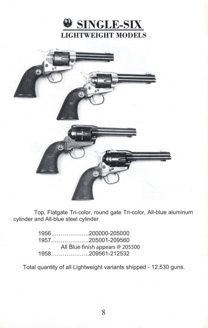 This booklet is a quick and ready reference for the collector and researcher that will allow instantaneous determination of production data of all or specific Ruger single-action revolvers.