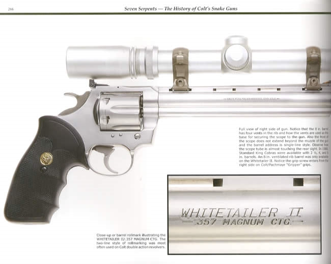 The only reference/coffee table book ever published exclusively on Colt's Snake Guns (double action revolvers). Models with chapter page totals include: Cobra (22 pages), King Cobra (34 pages), Python (140 pages), Diamondback (56 pages), Anaconda (28 pages), Boa (10 pages), Viper (10 pages).