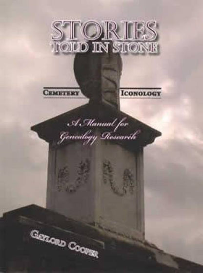STORIES TOLD IN STONE: Cemetery Iconology is subtitled 'A Manual for Genealogy Research' for many reasons. From graveyard to cemetery, author and certified genealogist Gaylord Cooper explains definitions, symbols and sources beneficial in the study of genealogy, culture and history. Readers of many backgrounds will find this both a useful tool for research and a fascinating read for simple curiosity. Sometimes artfully ornate, sometimes tastefully spare, the meanings of icons used on grave markers are explained in detail. Do's and Don'ts for cleaning and preserving gravestones are presented. Worksheets, source lists, field guides and other helpful materials are included. This is a book for people searching for ancestors and recording genealogy, as well as for readers who find beauty in the visual symbolism of architectural and memorial monuments. Many photographs.