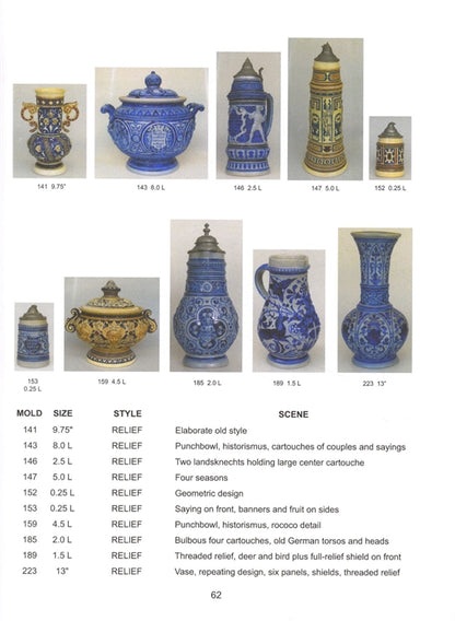 This book covers one of the major manufacturers of German beer steins from the 1800s into the mid-nineteenth century. In it the author provides insights into the operation of pottery manufacturers of the period and a few of their relationships. Many pages are focused on the different styles and finishes J. W. Remy firm used to expand their sales.