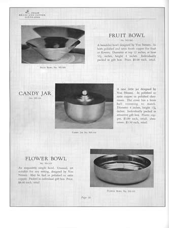 The rise and fall of American Art Deco coincide neatly with the brief, but glorious, heyday of the Chase Brass & Copper Co.s Specialty division. Gleaming Chase housewares of chrome, brass, and copper brightened many homes during the Depression years of the 1930s, thanks to the talents of such leading industrial designers as Lurelle Guild, Walter Von Nessen, Russel Wright, and Harry Laylon.