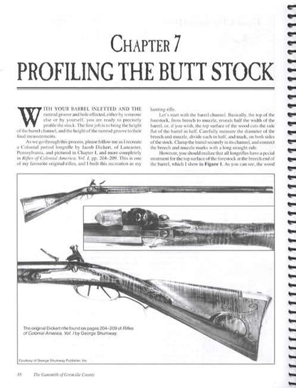 Recreating the American Longrifle, 5th Edition by William Buchele, George Shumway & Peter Alexander - Produced by these 3 acknowledged experts, this is the best book ever written on building and decorating your own flintlock or percussion longrifle. It contains an abundance of vital information and extremely helpful tips found nowhere else. With over 285 line drawings and 106 photographs, the many subtle steps and procedures such as inletting, carving, engraving, and all other procedures are covered in great detail. All the information needed to build a sound and beautiful rifle or pistol is included here, along with full-size drawings of both, and an up-to-date section on sources and references. This is the 5th Edition, fully revised in 1998, with over 30,000 copies sold since the first printing.