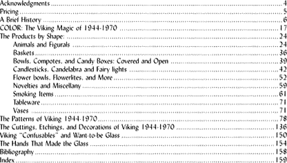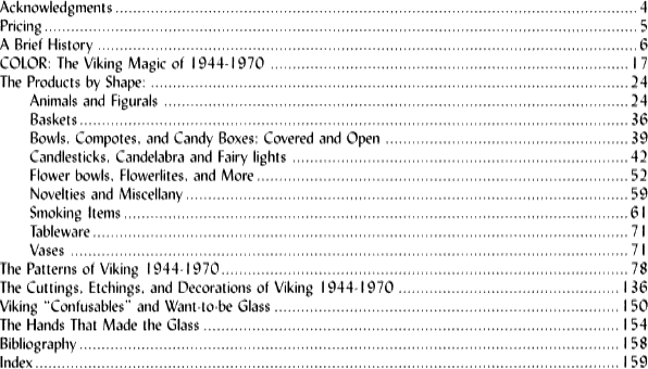 Over 520 beautiful color photographs display the fine quality, distinctive, handmade, modern glassware produced by the Viking Glass Company of New Martinsville, West Virginia, from 1944 to 1970.