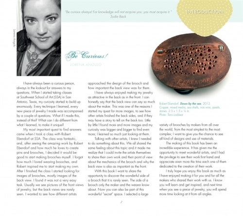The focus of this book is on the side of the brooch that usually isn't noticed: the reverse. When we encounter an attractive piece of jewelry, our instinct is to admire the front, but when we turn it around, it often reveals a secret. The author lets us in on that secret, typically only shared between the maker and the wearer. Clever brooch makers often adorn the back with items meant to complement the front, or the backside may have a unique, intricate design all its own. When you flip a brooch over in your hand you may find a surprise message, a hidden pattern, or even an unlikely foreign implement. The result is a better understanding of the artist's abilities and personality. Now, you can judge for yourself what the 128 artists respresented in this volume had in mind, and, if you are a jewelry maker, you may be inspired to leave your own unique mark.