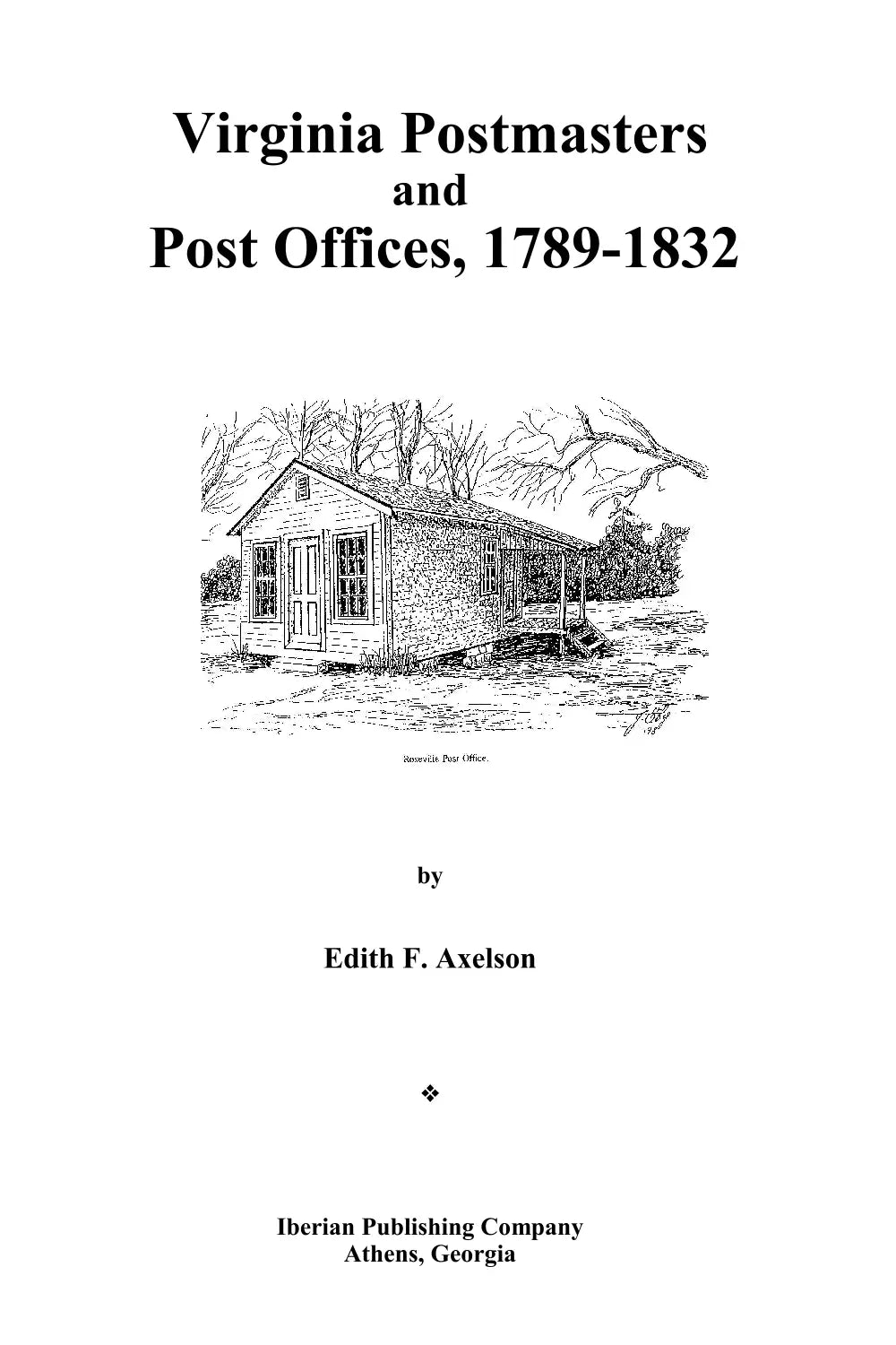 Working with record group 28 in the National Archives, the compiler has located the counties for the many post offices listed and has presented a marvelous panoply of the early postal system in Virginia. This volume has immense genealogical value for the Virginia researcher: it gives the names of over three thousand men and women who were postmasters and over one thousand towns and taverns, creeks and crossroads, streams and stores, all of which boasted a post office for at least a short period of time.